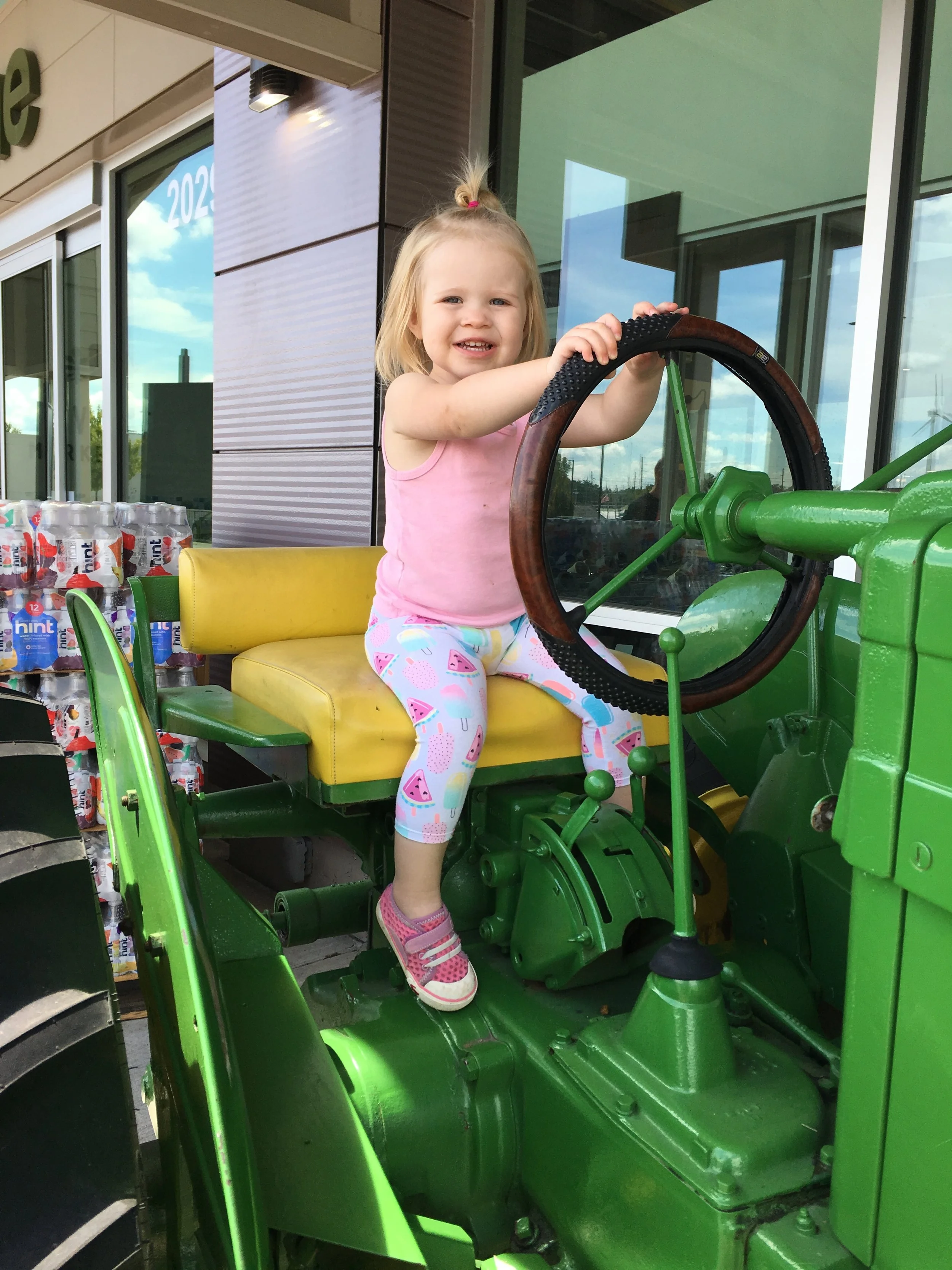 Way actually got to “ride” two tractors this weekend. We went to Harvest Market for a couple groceries and they have a big tractor sitting outside! She knew exactly how to steer and shift the tractor. I don’t know how she got this cool…😎