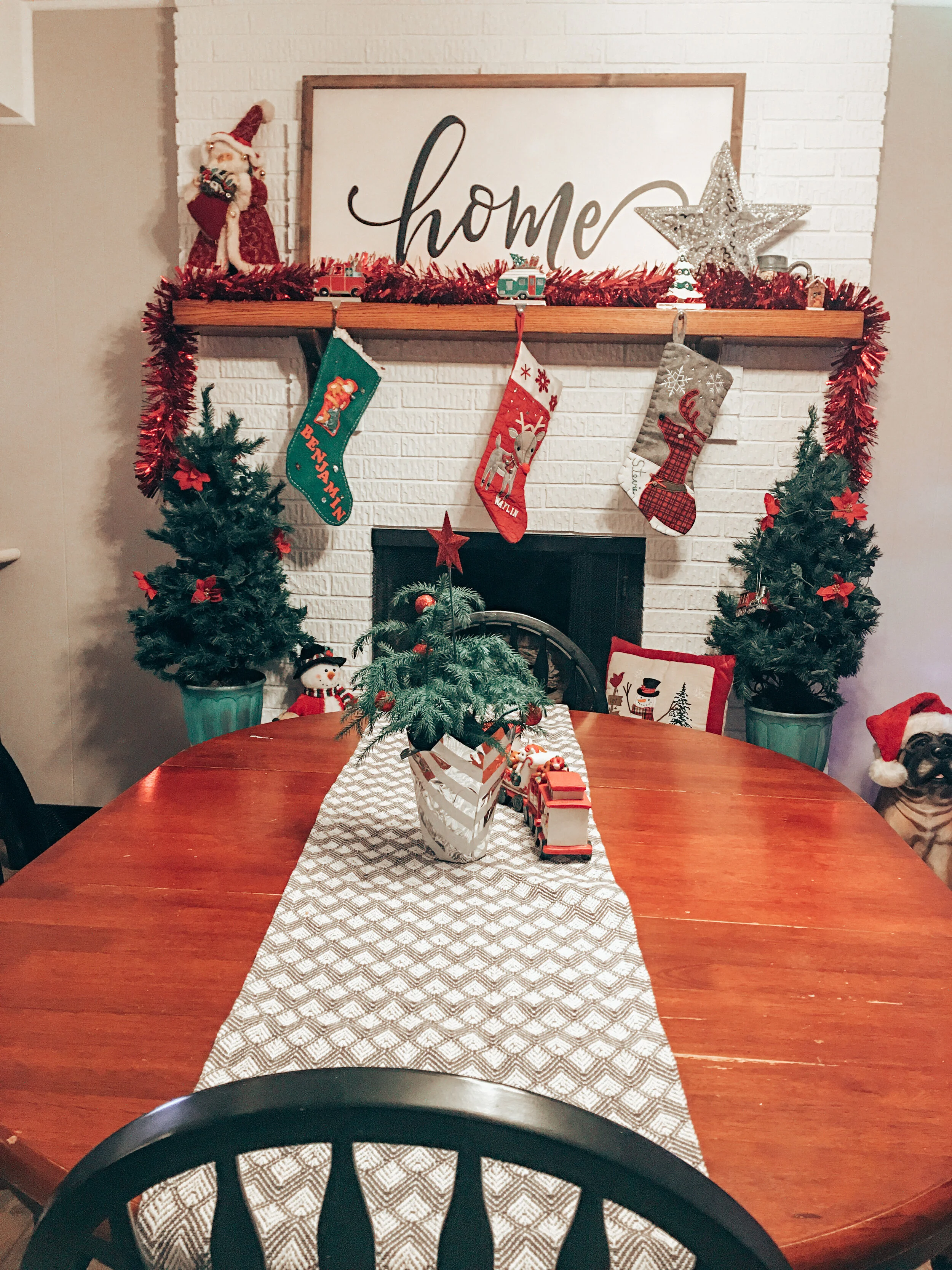 Here’s a look at our Christmas tree this year. Our dining room got all spruced up for the holidays!