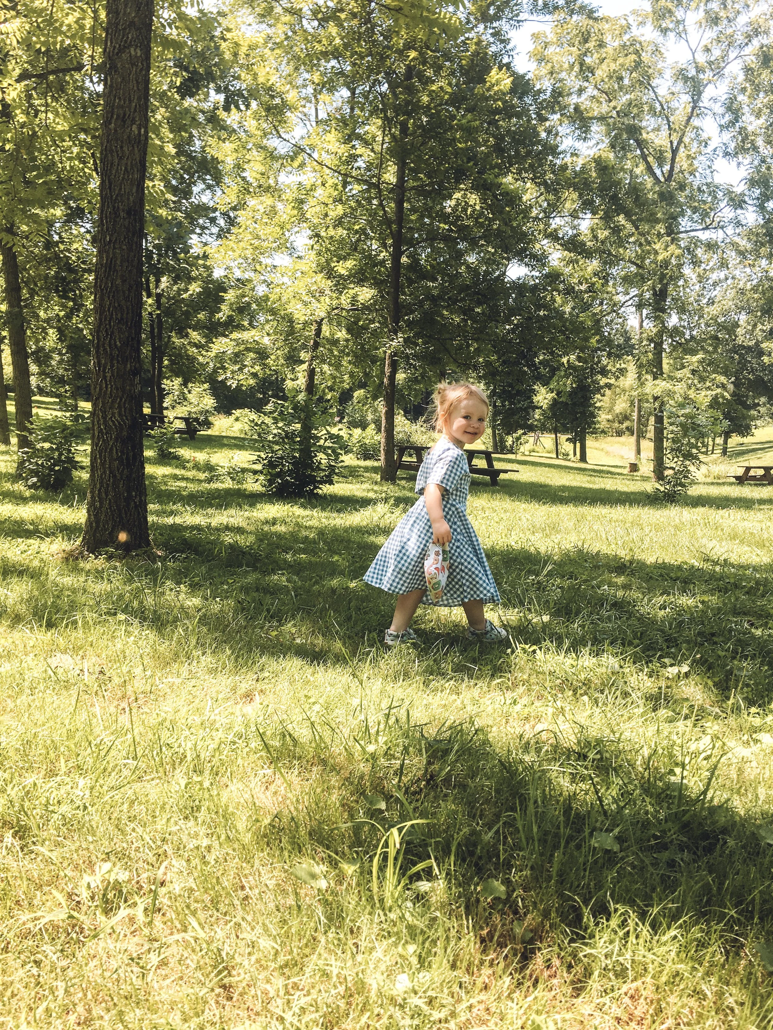 Isnāt this dress just adorable? I love the back cut-out! As we sat on the picnic table enjoying some muffins and milk, I couldnāt help but get up and snap some pictures of her sitting there. She is perfection. There is no doubt about it!