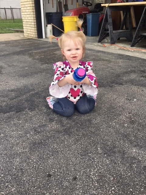 Part of that entertainment meant going outside to blow bubbles. See, the pigtails are rough, but they are still there! 😍 She loves bubbles! She wanted to *try* to blow the bubbles herself, so I let her. She learned how to dunk it into the bottle and hold it up to her lips. But then...she would eat the bubble solution! 🤦 Don't worry, it said "NON TOXIC" right next to "DO NOT INGEST!" 😲